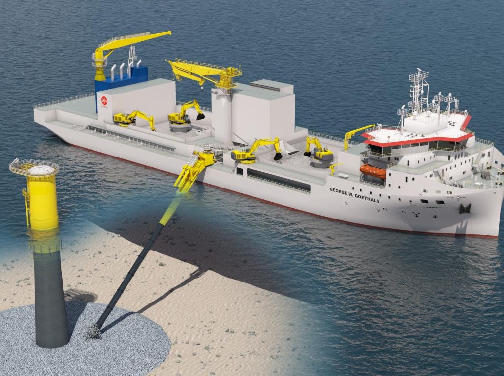 サブシーケーブルは、世界のエネルギー伝送とデジタル通信の基盤を形成しています。海底を数千キロメートルにわたって伸び、沖合の風力発電所を国家の電力網に接続し、国際的なインターネットトラフィックを可能にしています。しかし、その戦略的重要性から、最近では破壊や妨害の脅威にさらされています。Jan De Nulの新しい船「George W. Goethals」は、37,000トンの運搬能力を持ち、垂直および傾斜落下管システムにより、最大400メートルの深さに特大の岩を設置でき、海底のエネルギーケーブルや構造物の保護を強化します。この船は、同社の30,000トンを超える岩設置船としては3隻目で、合計の海底岩設置能力を10万トン以上に引き上げます。オペレーションは北海と東南アジアに焦点を当て、これらの地域は沖合の再生可能エネルギーの拡大をリードしています。Jan De NulのOffshore Energyディレクター、Philippe Hutseは、「この投資は、世界中の沖合インフラを保護する上での当社のリーディングポジションを強化します」と述べ、同社の数十年の経験を強調しました。また、Jan De Nulは、28,000トンのケーブルを運ぶことができる特大のケーブル敷設船「Fleeming Jenkin」と「William Thomson」も建造中です。これらの船は長距離プロジェクト向けに設計されており、国境を越えるエネルギーグリッドをつなぐインターコネクターケーブルを支援します。「George W. Goethals」は、超低排出船(ULEv)として納品され、99%の粒子排出を削減し、窒素酸化物をEURO VI基準以下に抑える先進的なフィルターシステムを備えています。この船のエンジンはバイオ燃料やグリーンメタノールでの運転が可能で、効率を改善しCO₂排出を削減するハイブリッド電力システムがサポートしています。この船は、パナマ運河の建設を監督したエンジニア、George Washington Goethalsにちなんで名付けられました。Jan De Nulは2009年から2016年にかけて、パナマ運河の第3ロック施設の建設に参加しました。
