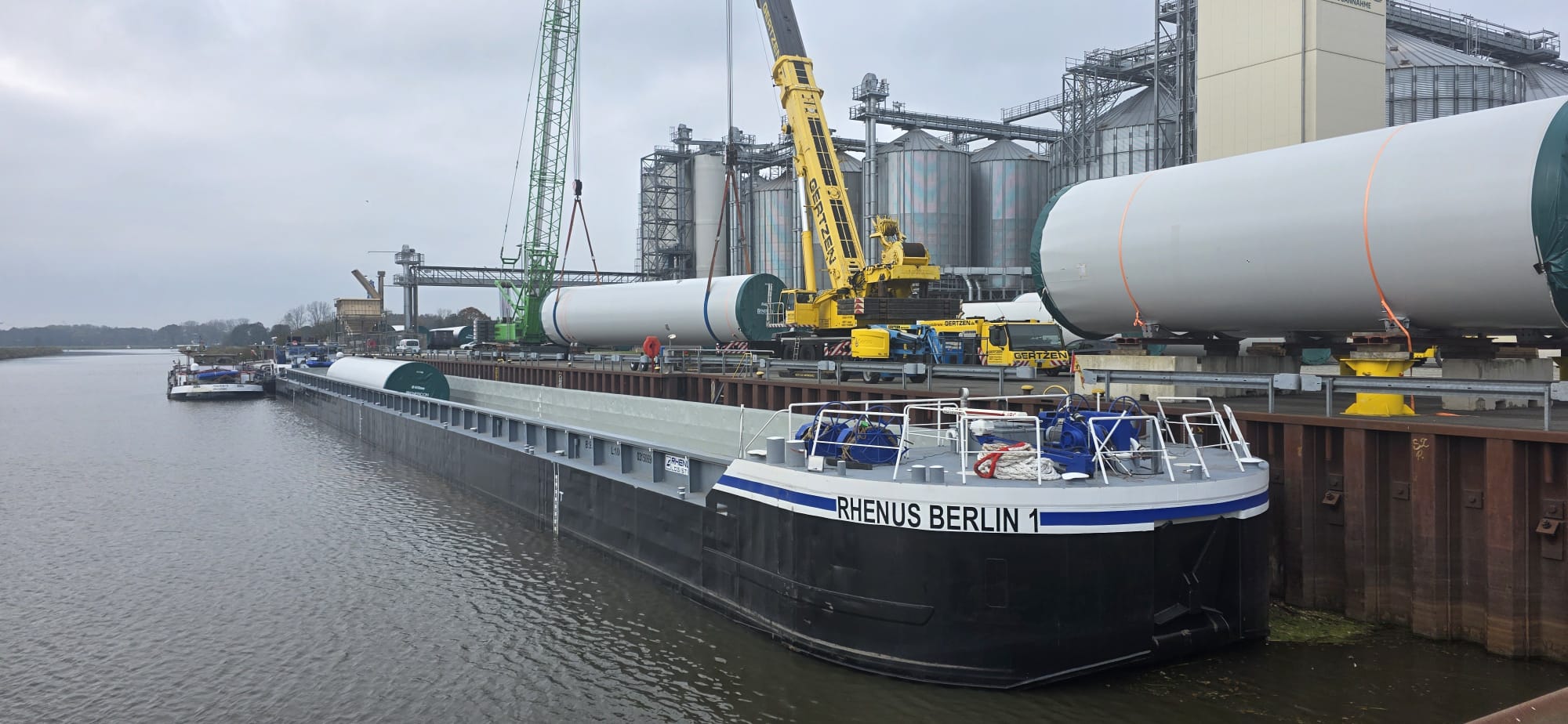 新しい押しバージ「Rhenus Berlin I」が風力タービン部品の初回輸送を完了し、RhenusとEnerconが共同開発したこの革新的な船の運航が開始されました。また、Mammoetが開発した新しいトレーラーシステムは、核産業などの重要な重輸送にかかる時間を半減させる可能性があります。
