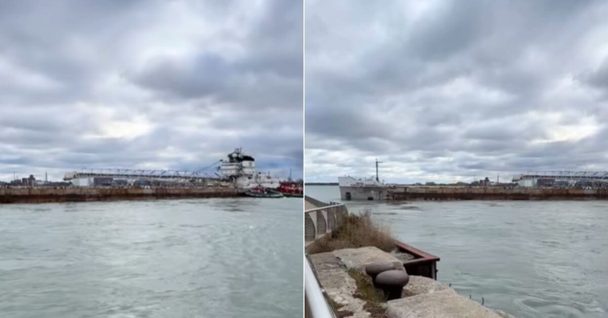 デトロイト川で、18,000トンの石を運ぶ貨物船が座礁しました。