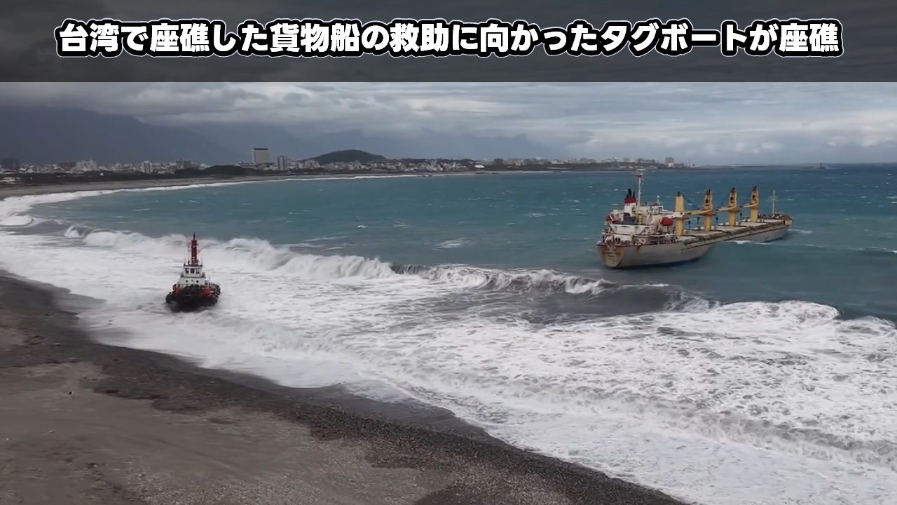 台湾で座礁した貨物船の救助に向かったタグボートも座礁した。