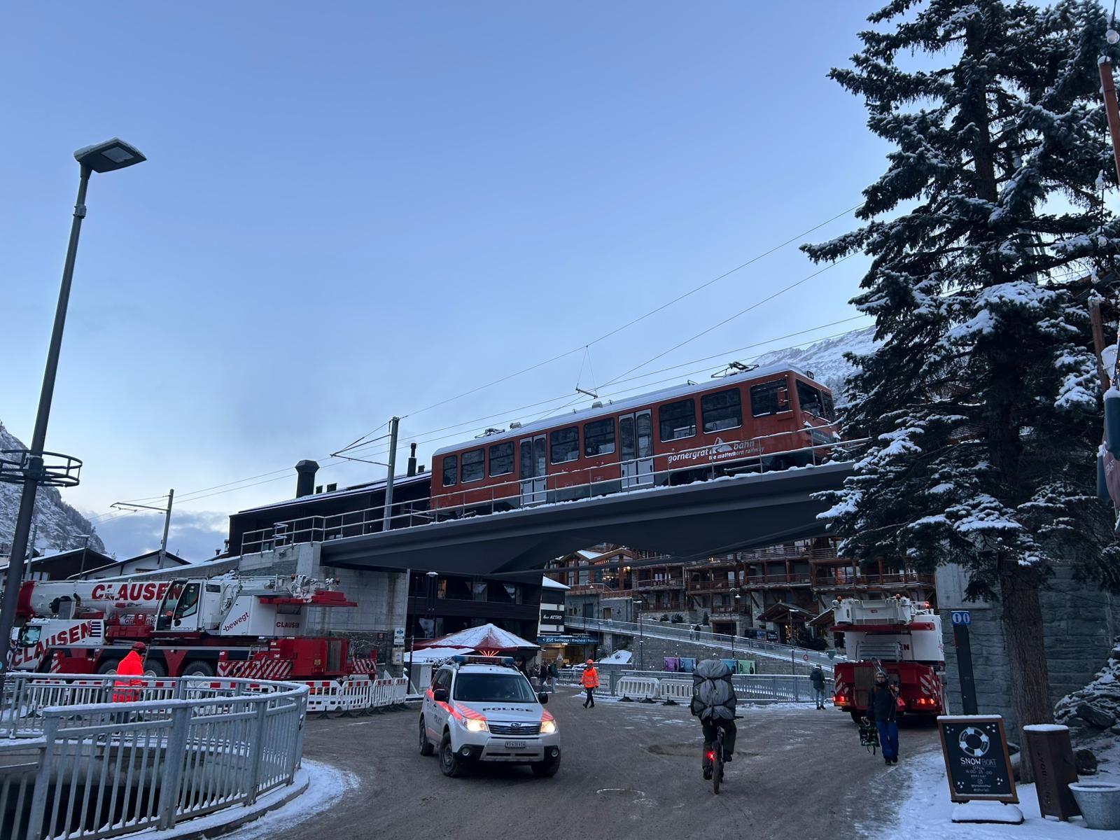 ゴルナーグラート鉄道は、スイスのツェルマットから標高3,100mまで観光客やウィンタースポーツ愛好者を運び、マッターホルンやゴルナー氷河、28の4,000m級の山々の景色を楽しむことができます。しかし、1月3日土曜日に、ツェルマットのゲットウィング橋でエンジンの故障により列車が停止し、動かせなくなりました。このような状況では、良いアイデアと信頼できるパートナーが必要です。そこで、Clausen Kran AGから2台の移動式クレーンが派遣され、車両を持ち上げて車軸を交換する作業が始まりました。修理作業は日曜日の朝8時頃に開始され、観光客やウィンタースポーツ愛好者はその間にRiffelberg-Express Zermatt Bergbahnenに乗り換えてゴルナーグラートエリアにアクセスできました。日曜日の午前11時30分にクレーンが持ち上げ作業を開始し、後に鉄道のエンジンは修理されて運行再開の準備が整いました。