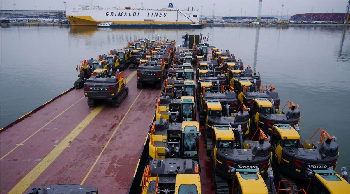 Van der VlistがバージでVolvoの機械を輸送する様子を映した動画。
