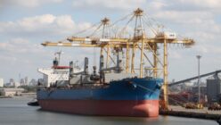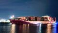 洋上風力発電 コンテナ船「One Henry Hudson」が港内のターミナルへ移動しました。