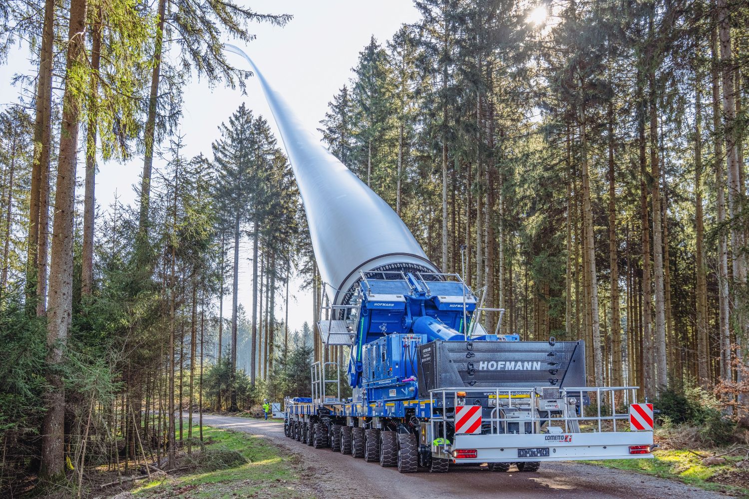Comettoの新しいBladeMAX1000は、パワー、精度、革新的技術を必要とします。ラインランド=プファルツ州の風力発電所プロジェクトでは、狭い道路や密集した森が課題となりましたが、ComettoのBladeMAX1000はその価値を証明しました。Paderbornに本社を置くHofmann Kran-Vermietung GmbH & Co.KGの初めての導入にとって真の試練です。