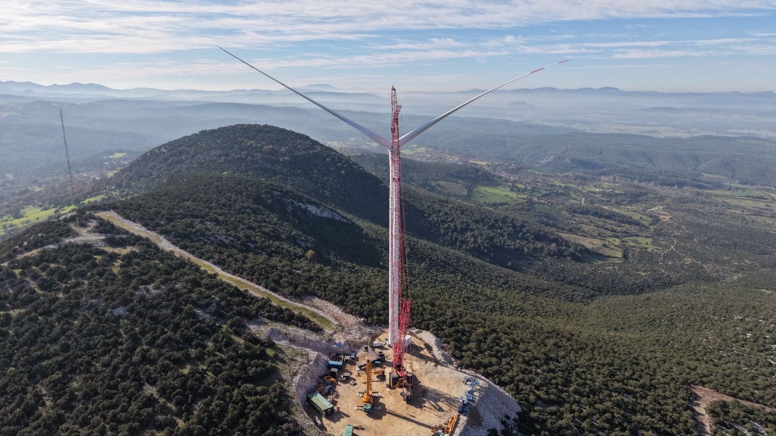 81mの長さで25tの風力発電用ブレードの設置が成功裏に完了しました。設置には、118tの重量を持つ発電機、ナセル、ハブ、タワー部品も含まれています。この作業は、800tのリフト能力を持つSANY CRANE SCC8000Aクローラークレーン、250tのリフト能力を持つSANY CRANE SAC2500Eモバイルクレーン、200tのリフト能力を持つDemag Cranes & Components AC200-1モバイルクレーンを使用して行われました。