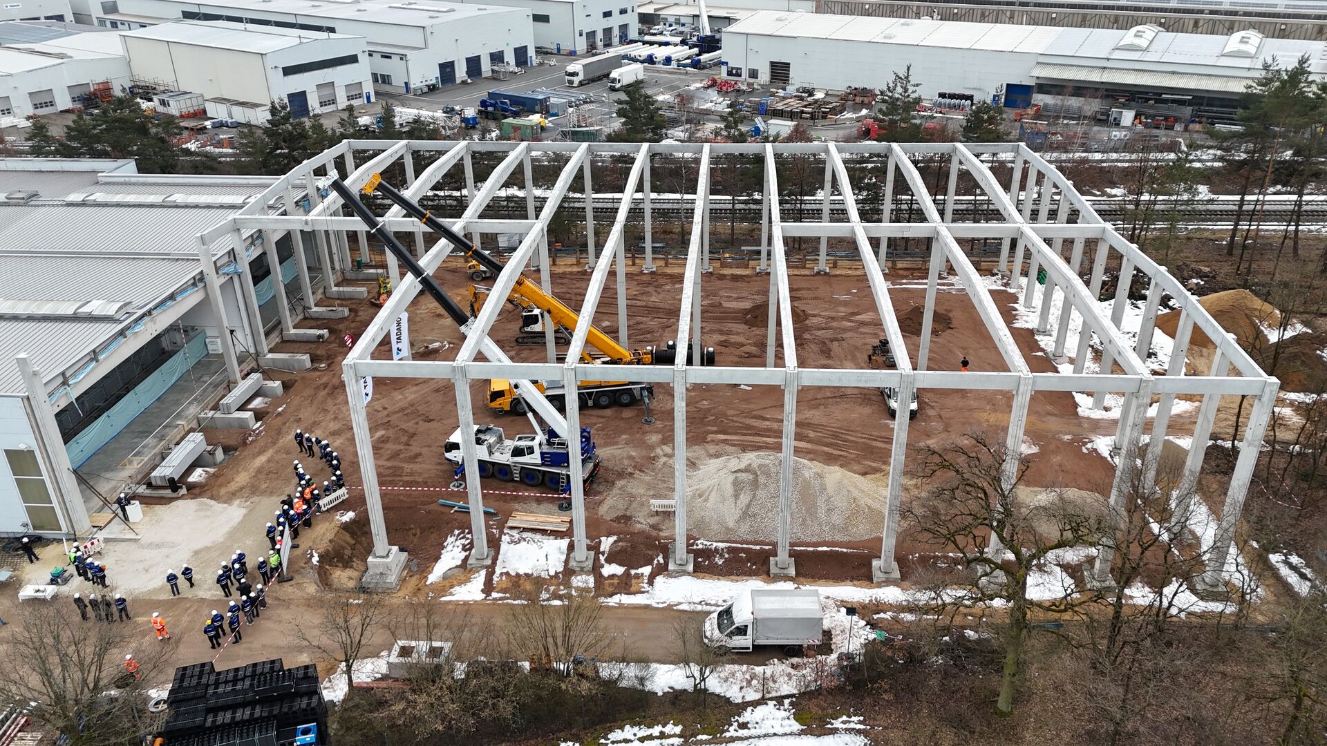 タダノは新しいヨーロッパの部品センターの建設を通じて、ヨーロッパの顧客に対する配送能力とサービスのスピードを強化し、ドイツにおけるビジネスの重要性を示しています。タダノはヨーロッパ全体の部品供給をラウフ・アン・デア・ペグニッツの工場に集中させ、顧客サービスの向上と競争力の強化を目指しています。2026年2月9日に行われた上棟式は、このプロジェクトの重要な節目となりました。2026年後半には、ラウフの倉庫がヨーロッパ全体の部品供給を担う体制が整います。部品センターの運営は、タダノの長年のパートナーであるグルーバーと共同で行われ、グルーバーはタダノの部品専門の物流会社です。