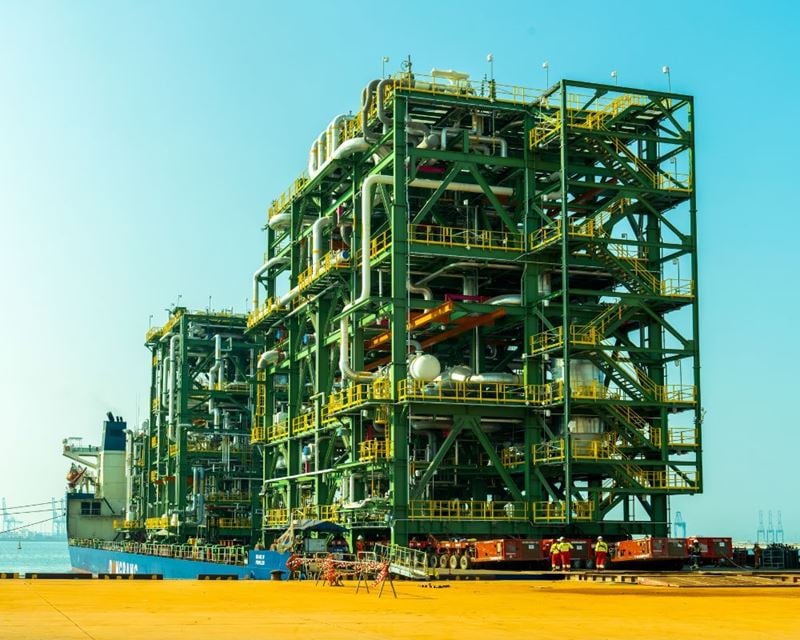 Mammoetがカリファ港で2,464トンのガスモジュールの積出しを実施しました。