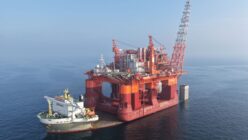 洋上風力発電 Boskalisの重輸送船Blue Marlinが、41,000トンの浮体式生産ユニットをアンゴラへ運搬中。